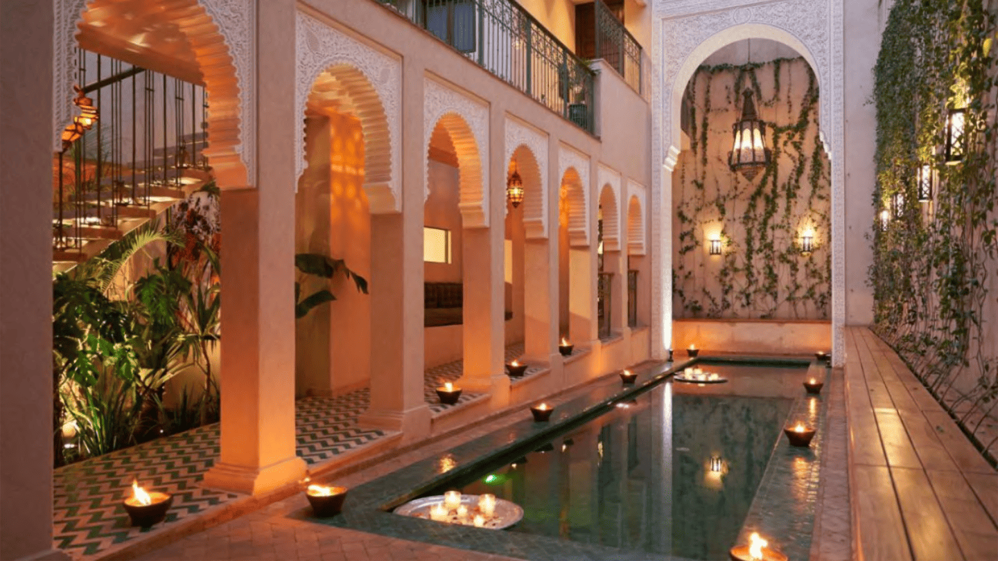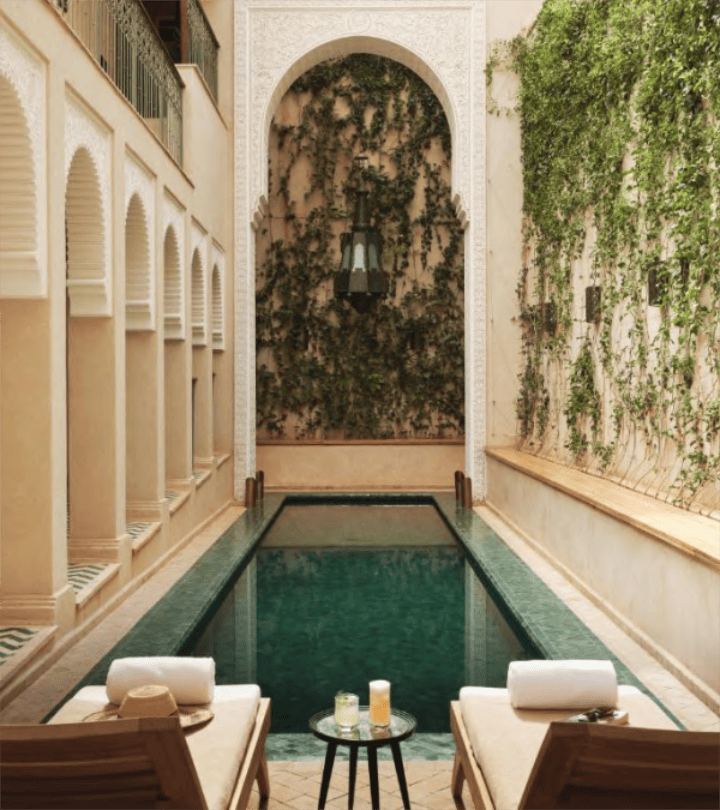 W wyjątkowym hotelu w marokańskiej palmiarni poznasz elegancką, spokojną i otuloną cieniem palm twarz Marakeszu.