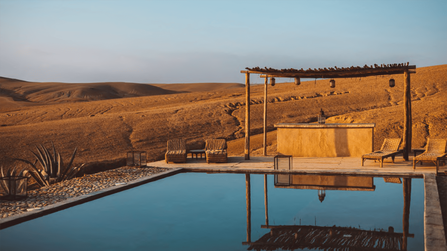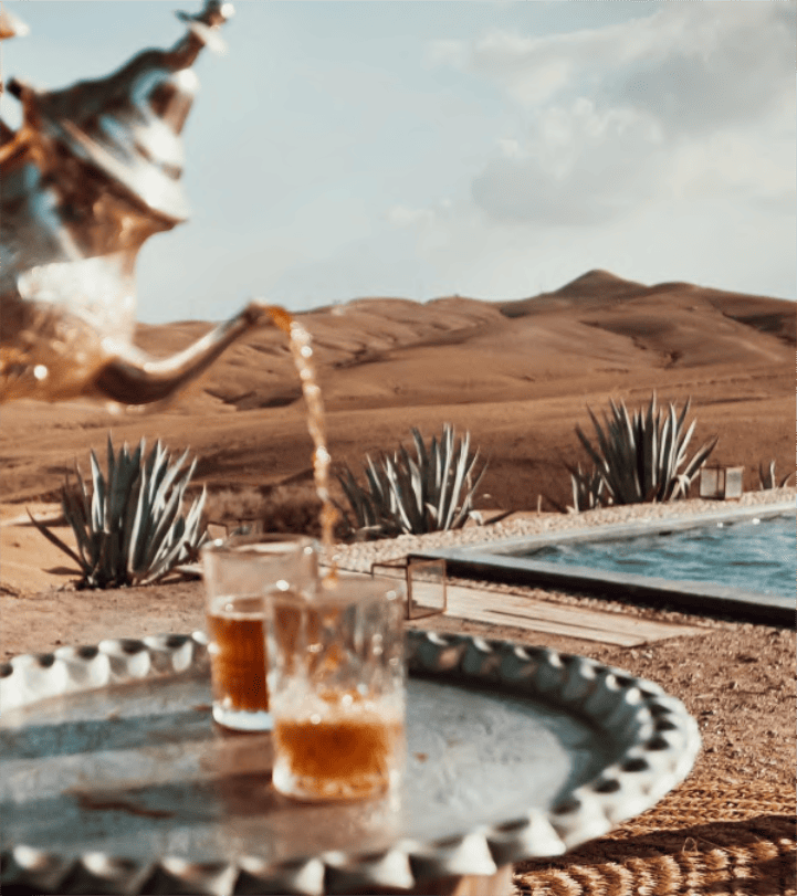 Dopełnieniem podróży będzie pobyt na malowniczej pustyni Agafay w campie, gdzie podczas kolacji poznamy tajniki wykwintnej kuchni marokańskiej, noc spędzimy w luksusowych namiotach, a wschód słońca będziemy podziwiać wśród szczytów gór Atlas.